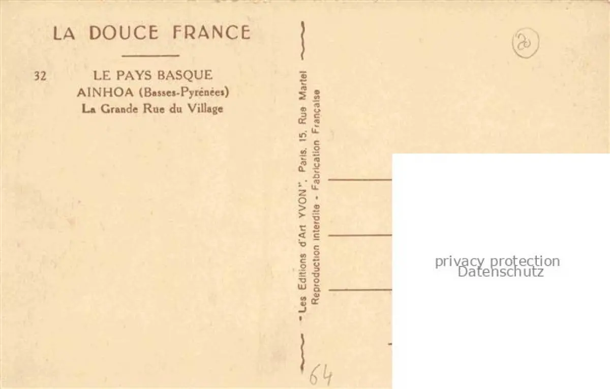 14106048 Ainhoa BAYONNE 64 Pyrenees-Atlantiques La Grande Rue du village postalisch nicht gelaufen Erhaltung siehe scans [FriedD77] Frie Katcode 11170064164014