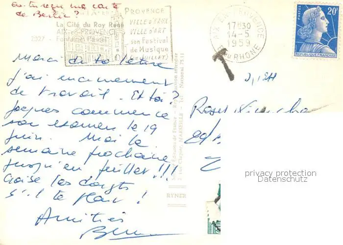 Aix-en-Provence Fontaine Pascal Aix-en-Provence postalisch gelaufen 1959 Erhaltung siehe scans [WerneD78] WernPID7