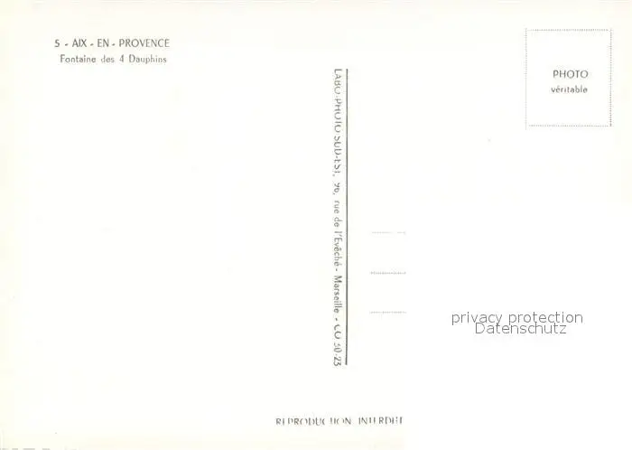 Aix-en-Provence Fontaine des 4 Dauphins Aix-en-Provence postalisch nicht gelaufen 1921-1965 Erhaltung siehe scans [LiesaD40] LiesID40