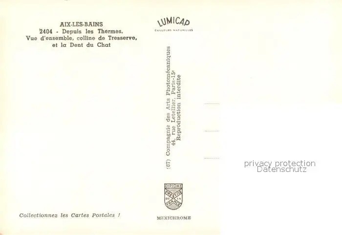 Aix-les-Bains Depuis les Thermes Vue d’ensemble colline de Tresserve et la Dent du Chat Aix-les-Bains postalisch nicht gelaufen nach 1965 Erhaltung siehe scans [WerneD78] WernPID7