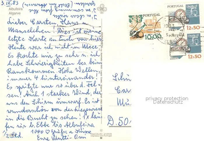 Albufeira Strand Albufeira postalisch gelaufen 1983 Erhaltung siehe scans [LiesaD40] LiesID40