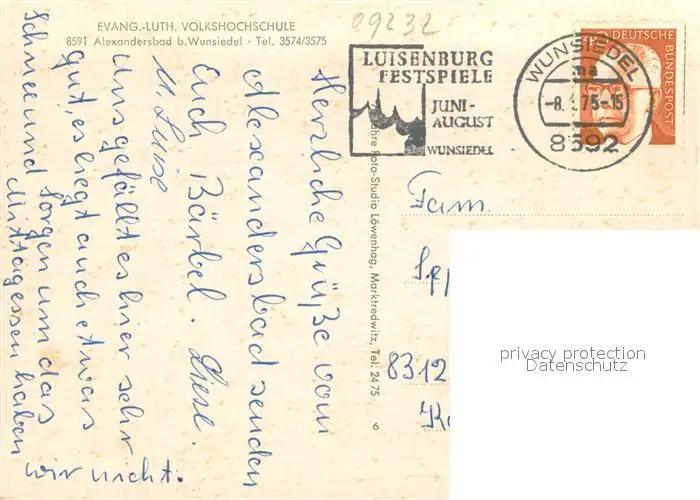 Alexandersbad_Bad Ev luth Volkshochschule Alexandersbad_Bad postalisch gelaufen 1975 Erhaltung siehe scans [WerneD78] WernPID7