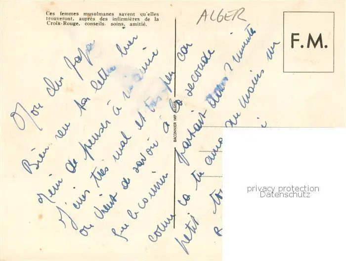 Alger_Algerien Ces femmes musulmanes savent qu’elles trouveront aupres des infirmieres de la Croix Rouge Alger Algerien postalisch nicht gelaufen 1921-1965 Erhaltung siehe scans [FriedD77] Frierer