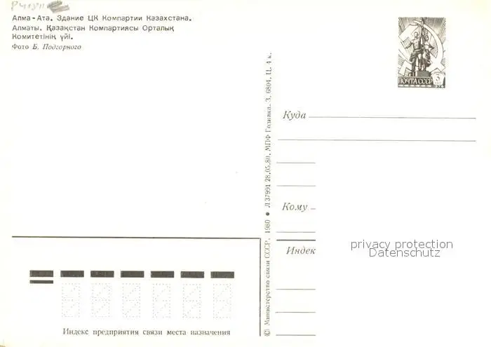 Alma-Ata_Almaty Zentralkomitee Alma-Ata Almaty postalisch nicht gelaufen nach 1965 Erhaltung siehe scans [IrynaD87] Iryn PID