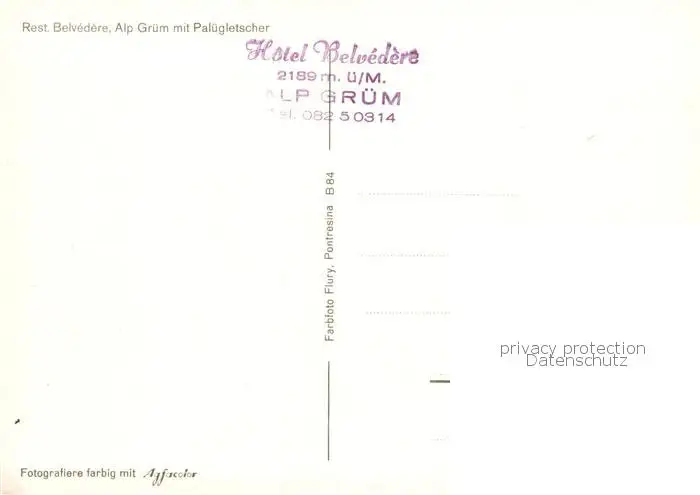 Alp_Gruem Restaurant Belvedere mit Paluegletscher Alp_Gruem postalisch nicht gelaufen nach 1965 Erhaltung siehe scans [WerneD78] WernPID7