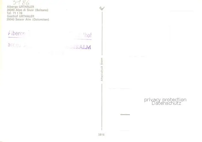 Alpe_di_Siusi Albergo Urthaler Alpe_di_Siusi postalisch nicht gelaufen nach 1965 Erhaltung siehe scans [NatalD47] NataID47