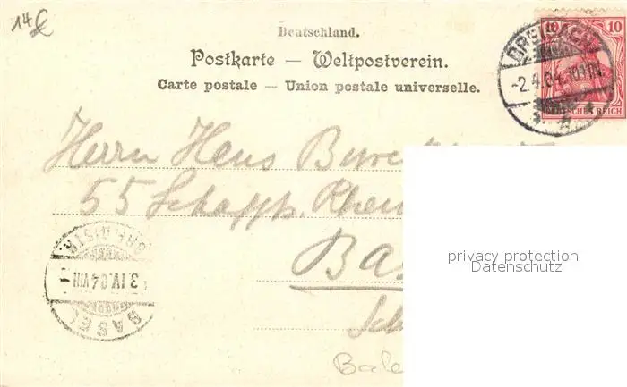 Alt_Breisach_Rhein Marktplatz mit Kirche Muenster Weltpostverein postalisch gelaufen 1904 Erhaltung siehe scans [FriedD77] Frierer