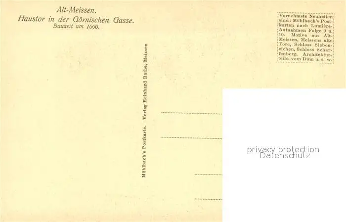 Alt_Meissen_Elbe Haustor in der Goernischen Gasse um 1600 Folge 6 No 5 Alt_Meissen_Elbe postalisch nicht gelaufen bis 1920 Erhaltung siehe scans [FriedD77] Frierer