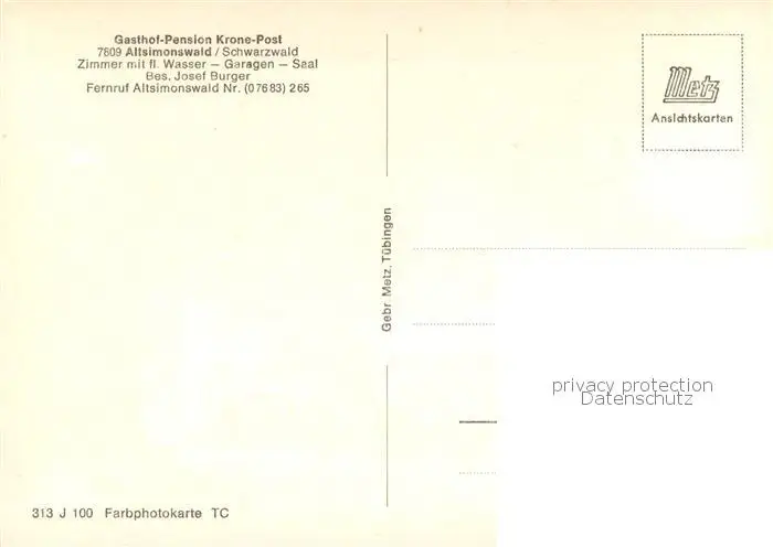 Altsimonswald Gasthof Pension Krone Post Altsimonswald postalisch nicht gelaufen nach 1965 Erhaltung siehe scans [FriedD77] Frierer