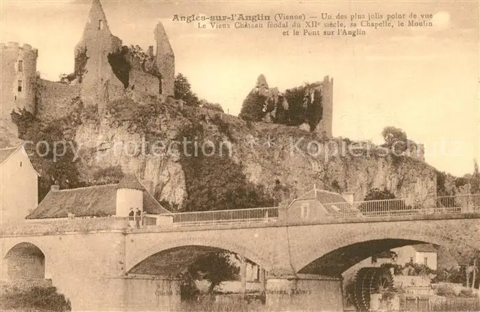 Angles-sur-l_Anglin Le Vieux Chateau feodal Sa Chapelle le Moulin et le Pontsur l'Auglin Angles-sur-l_Anglin postalisch nicht gelaufen bis 1920 Erhaltung siehe scans [WerneD78] WernPID7