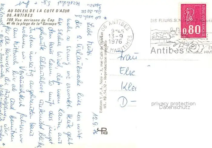 Antibes_Alpes_Maritimes Vue aérienne du Cap et Plage de la Garoupe Antibes_Alpes_Maritimes postalisch gelaufen 1976 Erhaltung siehe scans [FriedD77] Frierer