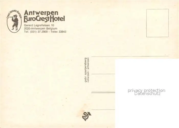 Antwerpen_Anvers EuroCrest Hotel Antwerpen Anvers postalisch nicht gelaufen nach 1965 Erhaltung siehe scans [FriedD77] Frierer