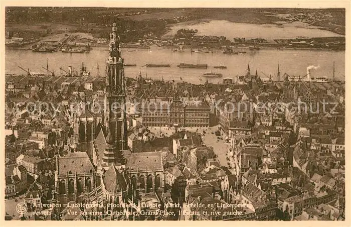 Anvers_Antwerpen Cathédrale Grand Place Escaut Rive gauche vue aérienne Anvers Antwerpen postalisch nicht gelaufen 1921-1965 Erhaltung siehe scans [FriedD77] Frierer
