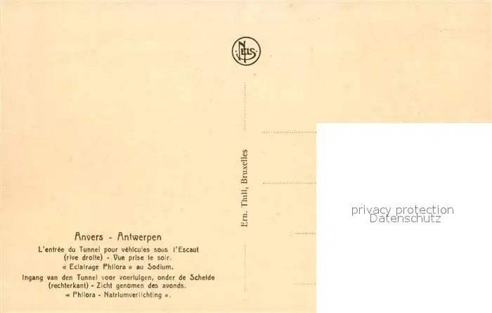 Anvers_Antwerpen Entree du Tunnel pour vehicules sous l’Escaut Vue prise le soir Anvers Antwerpen postalisch nicht gelaufen 1921-1965 Erhaltung siehe scans [WerneD78] WernPID7