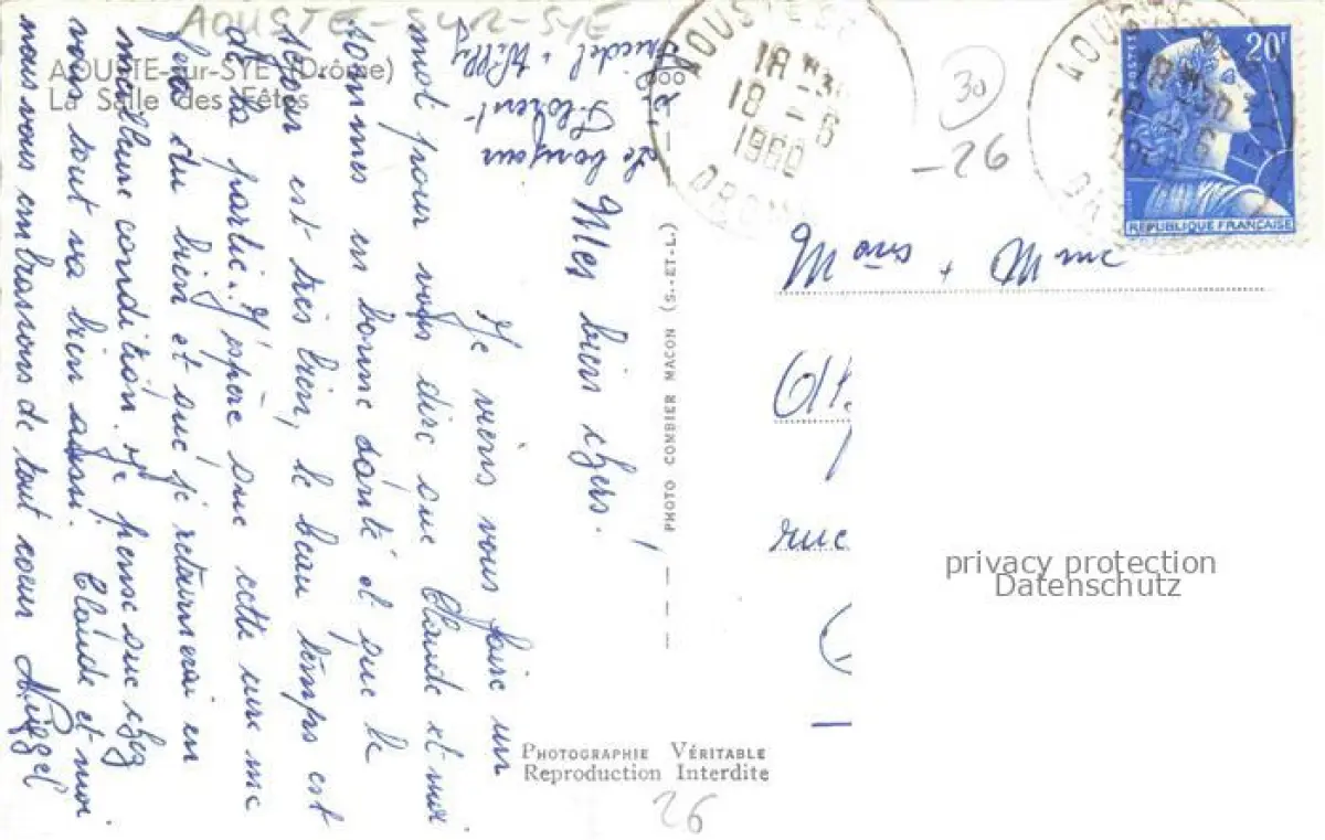 14108219 Aouste-sur-Sye DIE 26 Drome La Salle des Fêtes postalisch gelaufen Erhaltung siehe scans [FriedD77] carte postale Frie Katcode 11170026126011