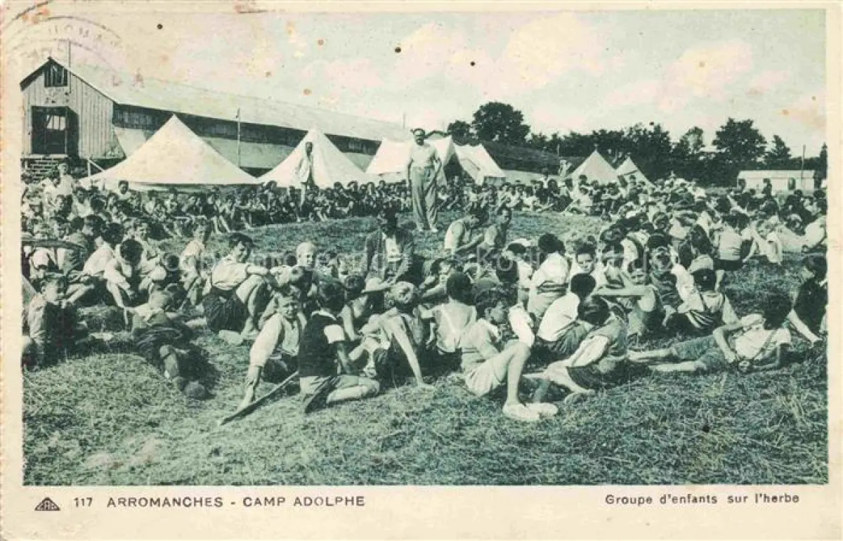 14106850 Arromanches-les-Bains Bayeux 14 Calvados Camp Adolphe Groupe d'enfants sur l'herbe postalisch gelaufen Erhaltung siehe scans [FriedD77] carte postale Frie Katcode 11170014114021