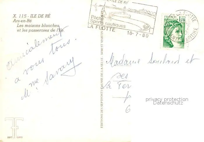 Ars-en-Re Les maisons blanches et les passeroses de l'Ile Ars-en-Re postalisch gelaufen 1980 Erhaltung siehe scans [WerneD78] WernPID7