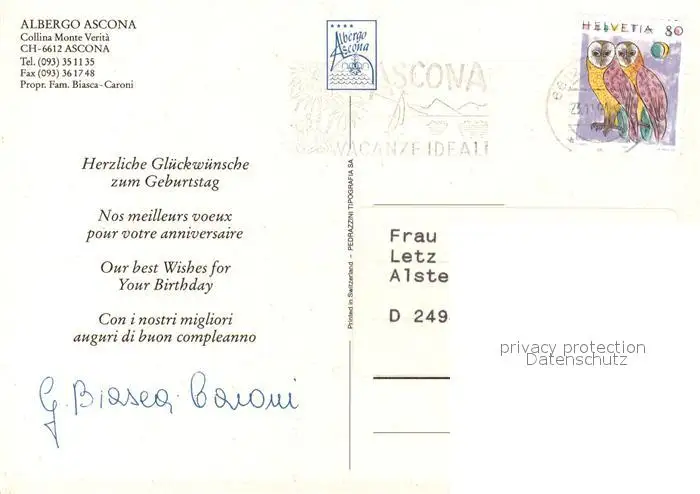 Ascona_Lago_Maggiore Albergo Ascona Restaurant Terrasse Ascona_Lago_Maggiore postalisch gelaufen 1994 Erhaltung siehe scans [FriedD77] Frierer