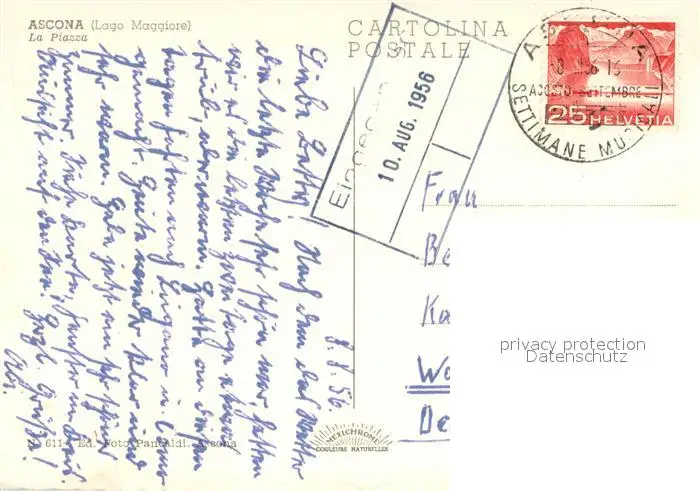 Ascona_TI La Piazza Ascona_TI postalisch gelaufen 1956 Erhaltung siehe scans [WerneD78] WernPID7