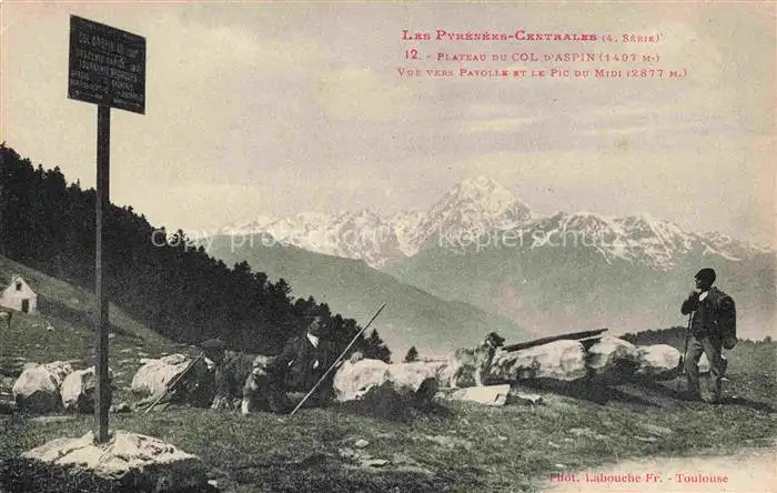 Aspin_Col_d_Aspin_Campan_Bagneres-de-Bigorre_65_Hautes-Pyrenees Plateau du Col Aspin Vue vers Payolle et le Pic du Midi postalisch nicht gelaufen bis 1920 Erhaltung siehe scans [WerneD78] WernPID7