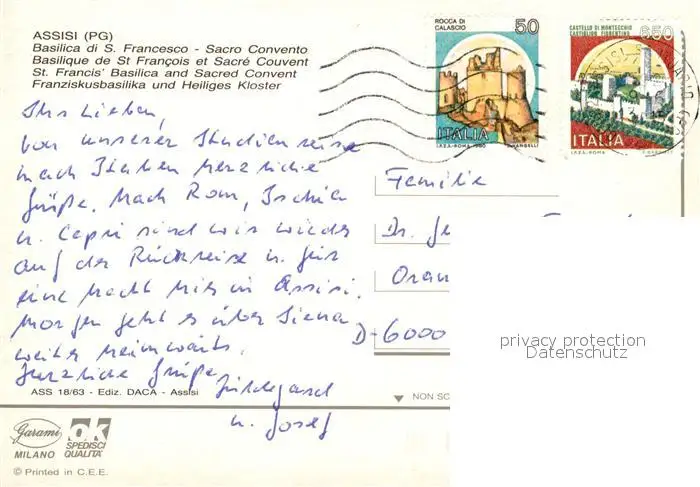 Assisi_Umbria Basilica di San Francesco Sacro Convento Basilika Heiliges Kloster Assisi Umbria postalisch gelaufen 1982 Erhaltung siehe scans [FriedD77] Frierer