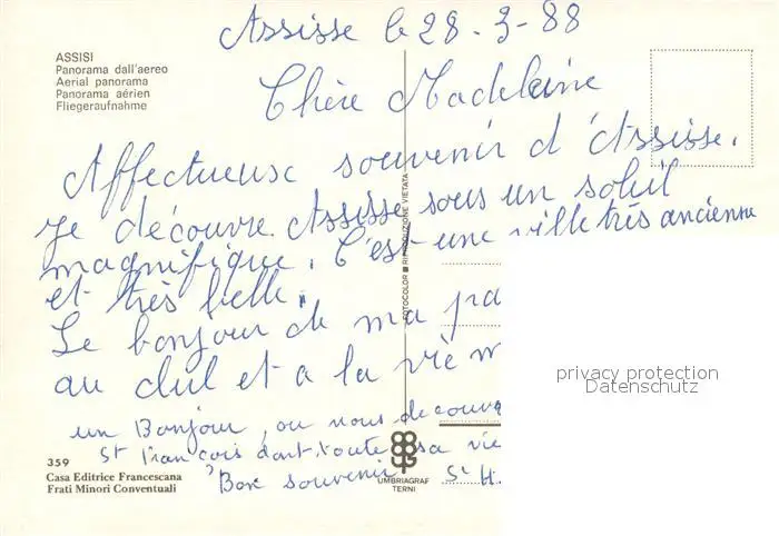 Assisi_Umbria Panorama dall'aereo Assisi Umbria postalisch nicht gelaufen 1988 Erhaltung siehe scans [FriedD77] Frierer