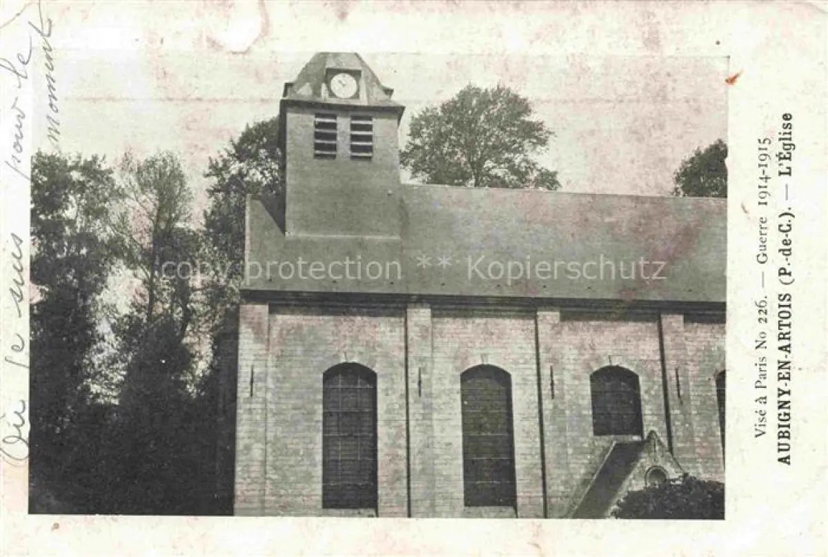 14119866 Aubigny-en-Artois ARRAS 62 Pas-de-Calais Vise Paris Nr. 226 Guerre postalisch nicht gelaufen Erhaltung siehe scans [IrynaD87] Iryn Katcode 11170062162045