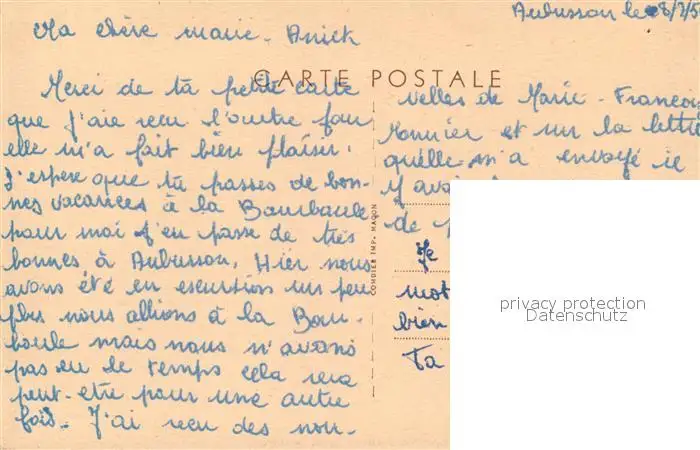 Aubusson_Creuse Institution Jeanne d'Arc Aubusson Creuse postalisch nicht gelaufen 1921-1965 Erhaltung siehe scans [KathaD81] Kathoren