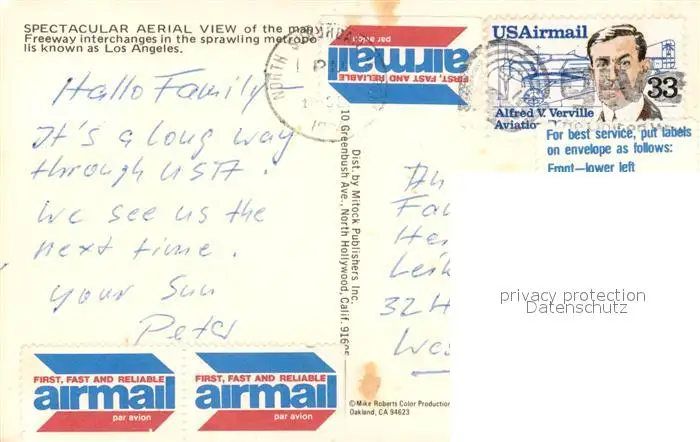 Autobahn Freeway Interchanges Los Angeles Aerial View postalisch gelaufen nach 1965 Erhaltung siehe scans [PaolaD17] PaolPID1