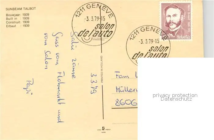 Autos Sunbeam Talbot Autos postalisch gelaufen 1979 Erhaltung siehe scans [PaolaD17] PaolPID1