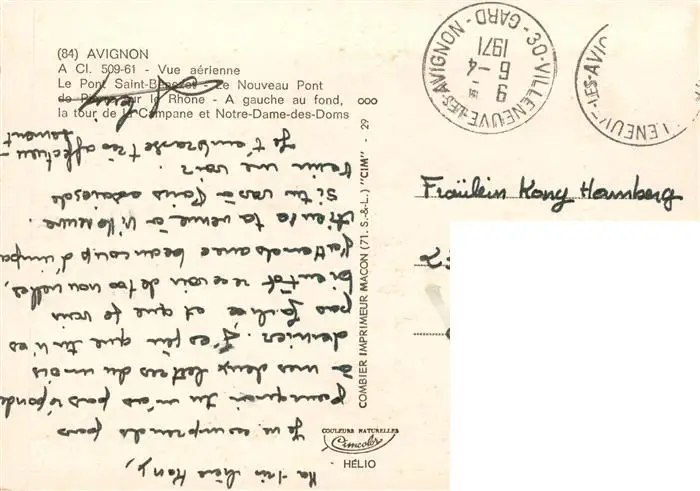 Avignon_84_Vaucluse Pont Saint Benezet Pont de pierre sur le Rhône Notre-Dame-des-Doms vue aérienne postalisch gelaufen 1971 Fliegeraufnahme Erhaltung siehe scans [FriedD77] Fliegeraufnahme Frierer
