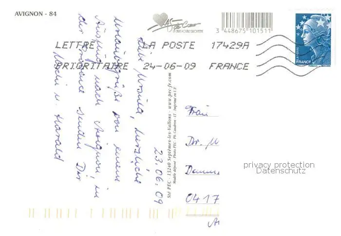 Avignon_Vaucluse Fliegeraufnahme Avignon Vaucluse postalisch gelaufen 2009 Erhaltung siehe scans [WerneD78] WernPID7