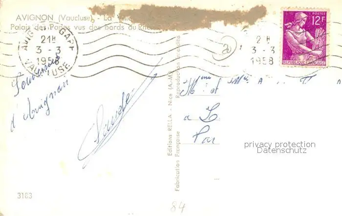 Avignon_Vaucluse Palais des Papes Avignon Vaucluse postalisch gelaufen 1958 Erhaltung siehe scans [WerneD78] WernPID7