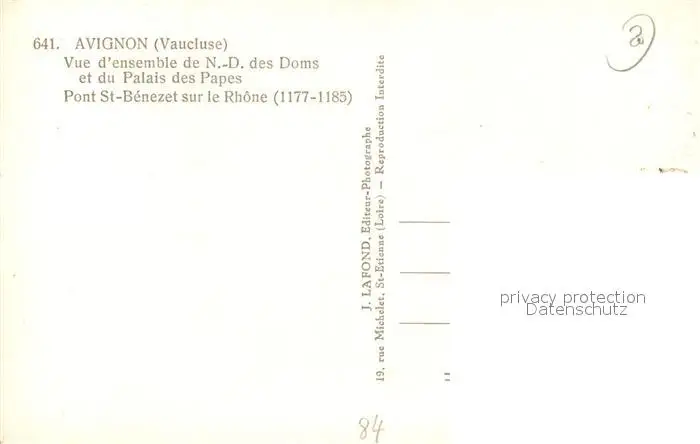 Avignon_Vaucluse Vue d’ensemble de ND des Doms et du Palais des Papes Pont St Benezet sur le Rhone Avignon Vaucluse postalisch nicht gelaufen 1921-1965 Erhaltung siehe scans [WerneD78] WernPID7