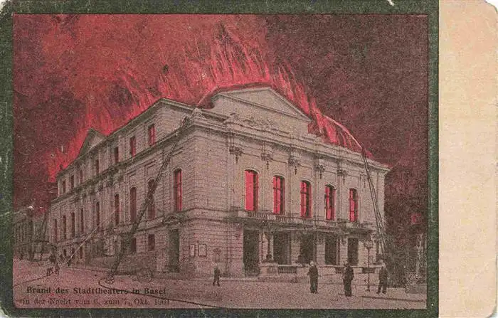BASEL_BS Brand des Stadttheaters in Basel Basel_BS postalisch nicht gelaufen bis 1920 Erhaltung siehe scans [FriedD77] Frierer