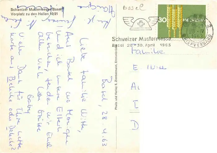 BASEL_BS Schweizer Mustermesse Basel Vorplatz zu den Hallen Basel_BS postalisch gelaufen 1963 Erhaltung siehe scans [WerneD78] WernPID7