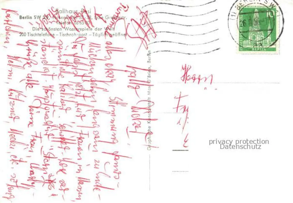 BERLIN CITY Ballhaus Resi Wasserspiele postalisch gelaufen Erhaltung siehe scans [WerneD78] alte Postkarte Wern Katcode 11110011000000