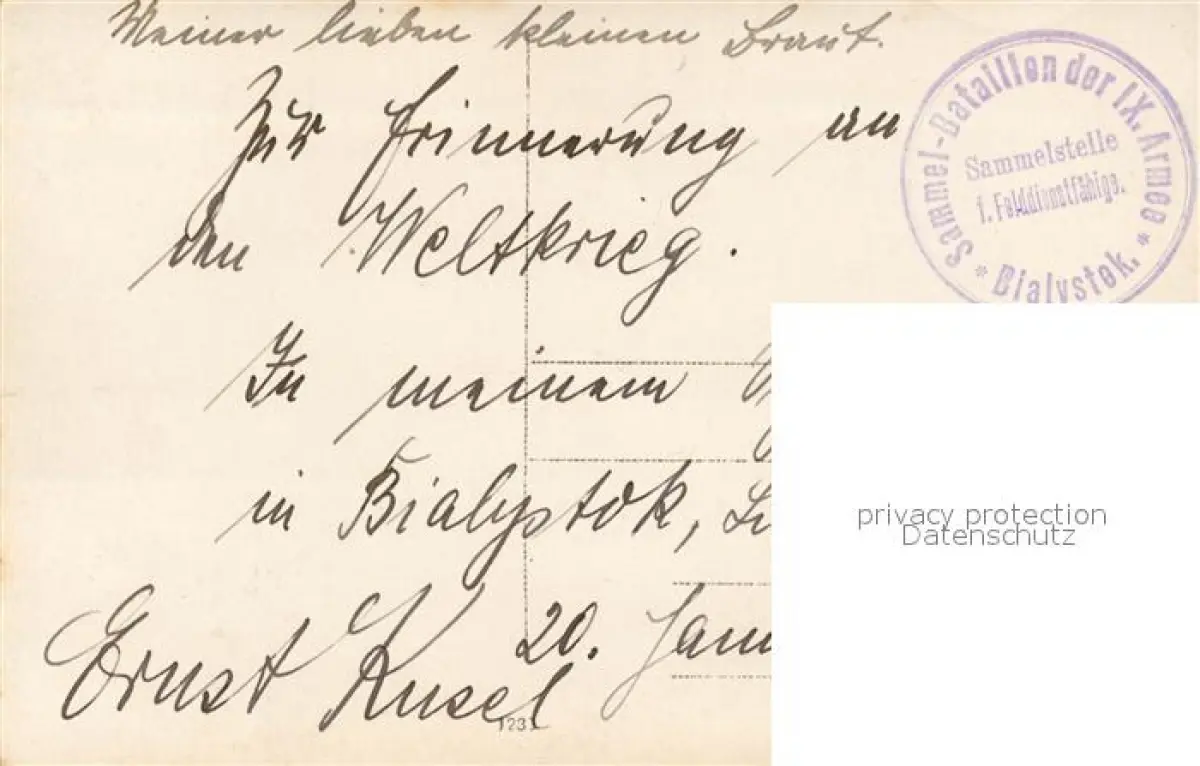 34096684 BIALYSTOK PL Bataillon der IX. Armee Felddienst postalisch nicht gelaufen Erhaltung siehe scans [ChrisD19] Chri Katcode 11410