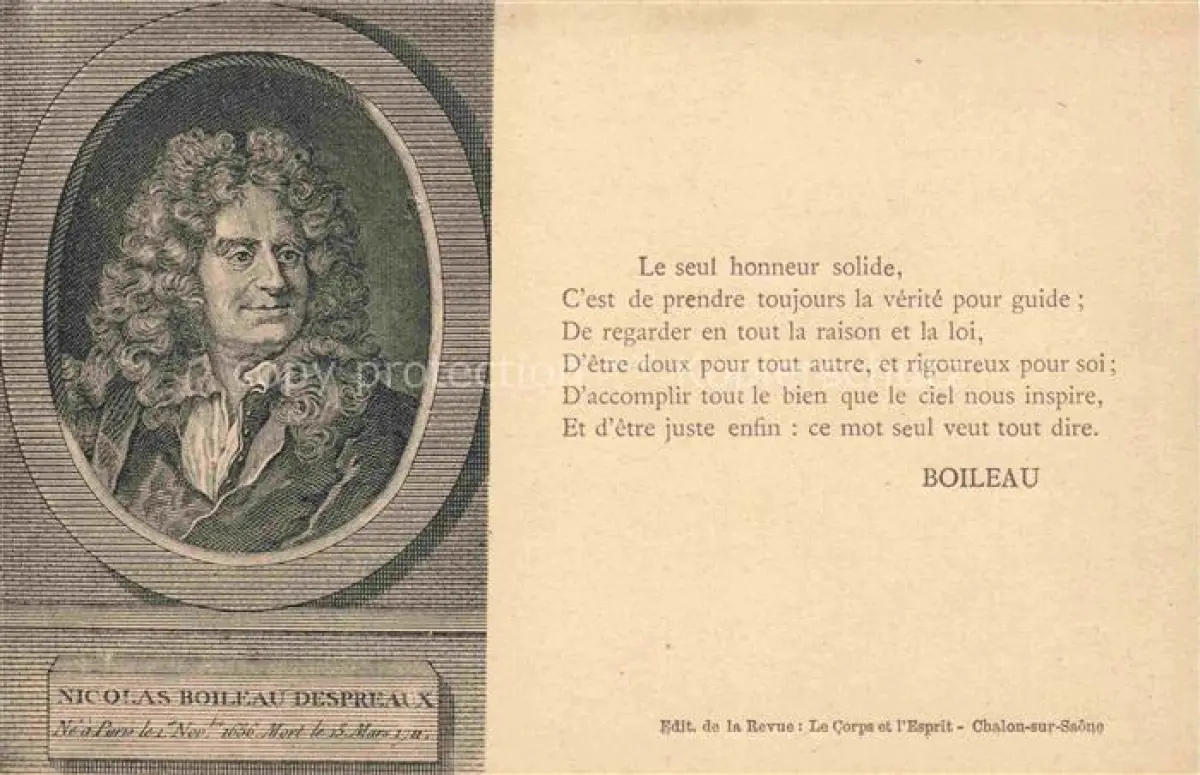 14102032 BOILEAU Nicolas (1636-1711) Writer Schriftsteller Ecrivain Escritor Scrittore-- Chalon sur Saône postalisch nicht gelaufen Erhaltung siehe scans [SanaeD93] Sana Katcode 22060