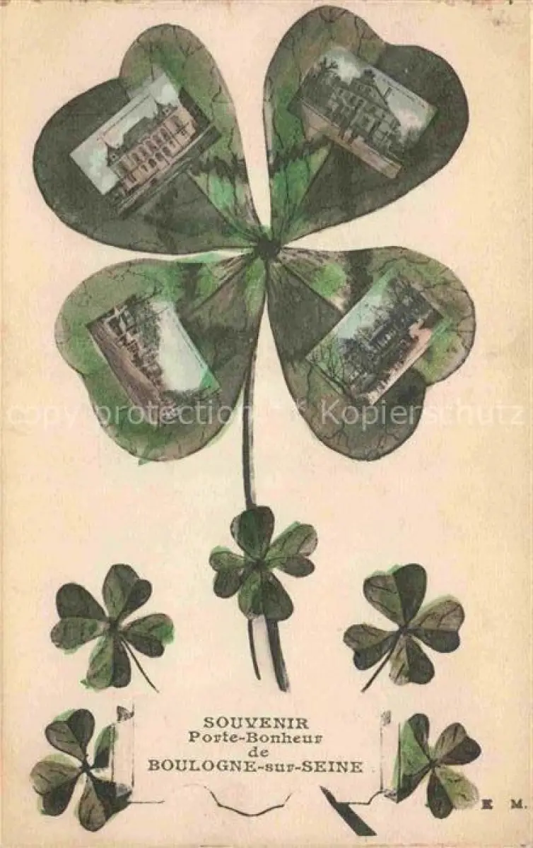 14113154 BOULOGNE-SUR-SEINE BOULOGNE-BILLANCOURT 92 Souvenir Porte-Bonheur vues d'ensemble Kleeblatt Kuenstlerkarte postalisch nicht gelaufen Erhaltung siehe scans [FriedD77] Frie Katcode 11170092392012