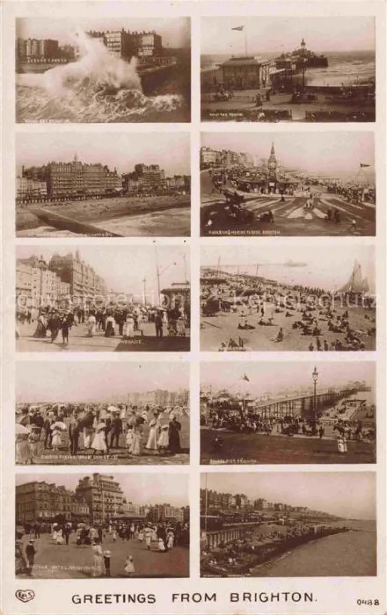 BRIGHTON East Sussex UK Sturmflut Strand Promenade Teilansichten postalisch nicht gelaufen Erhaltung siehe scans [WerneD78]