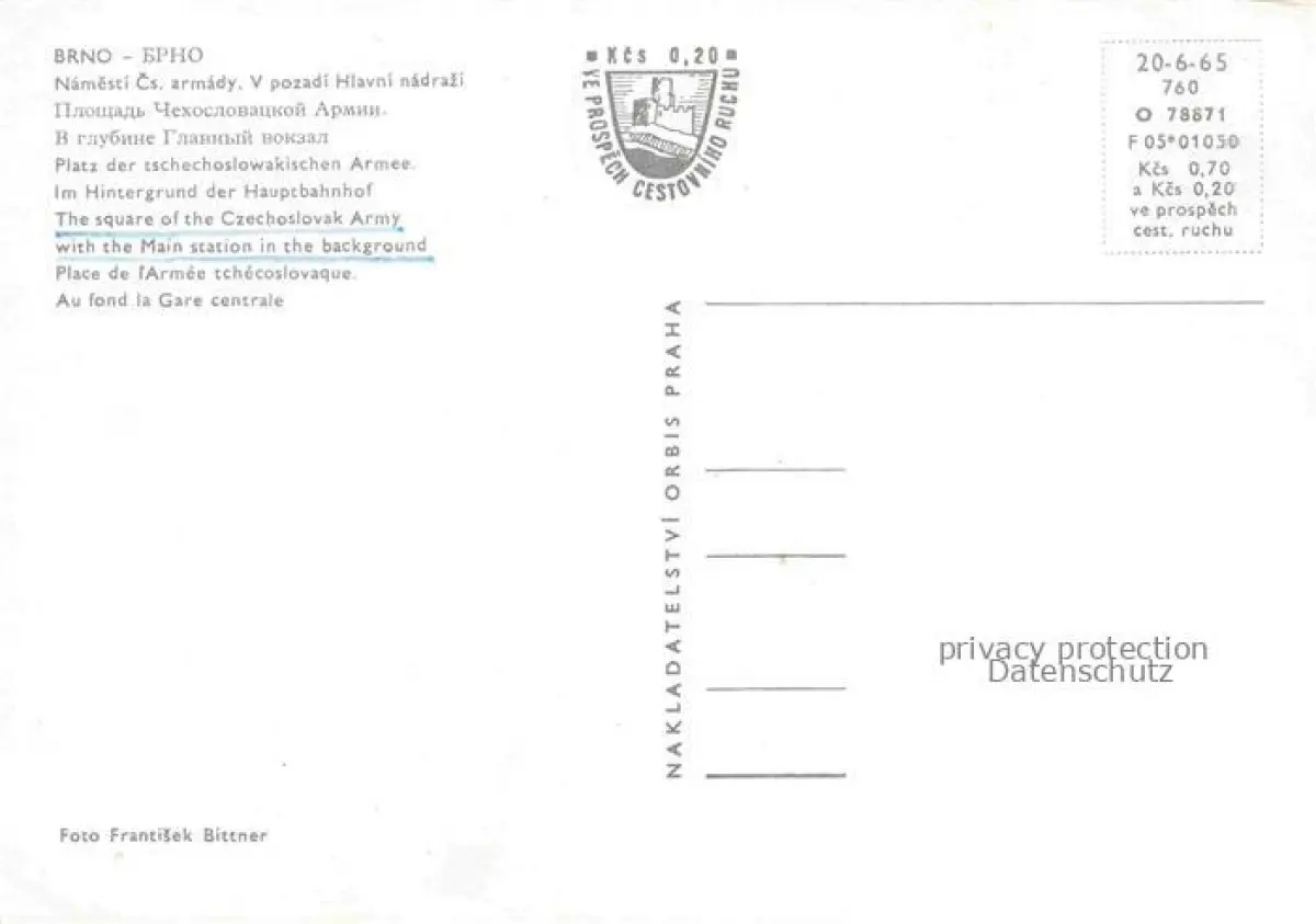 BRNO Bruenn CZ Square of the Czechoslovak Army an Main Station in the background postalisch nicht gelaufen Erhaltung siehe scans [FriedD77]