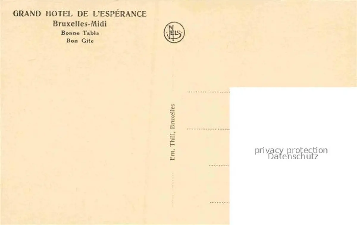 BRUXELLES Bruessel Brussels Hôtel de l'Espérance postalisch nicht gelaufen Erhaltung siehe scans [FriedD77]
