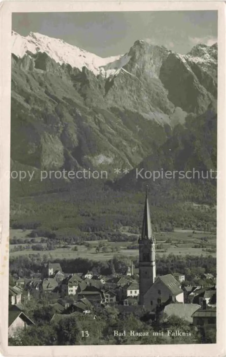 alte Postkarte Bad Ragaz Ragatz SG Falknis postalisch gelaufen Erhaltung siehe scans [SanaeD93]