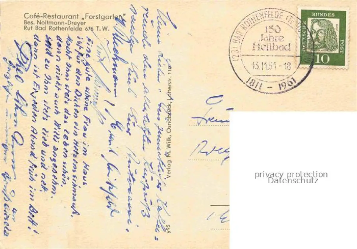 Bad Rothenfelde Osnabrueck Café Restaurant Forstgarten Teich postalisch gelaufen Erhaltung siehe scans [FriedD77] alte Postkarte Frie Katcode 11110003459006