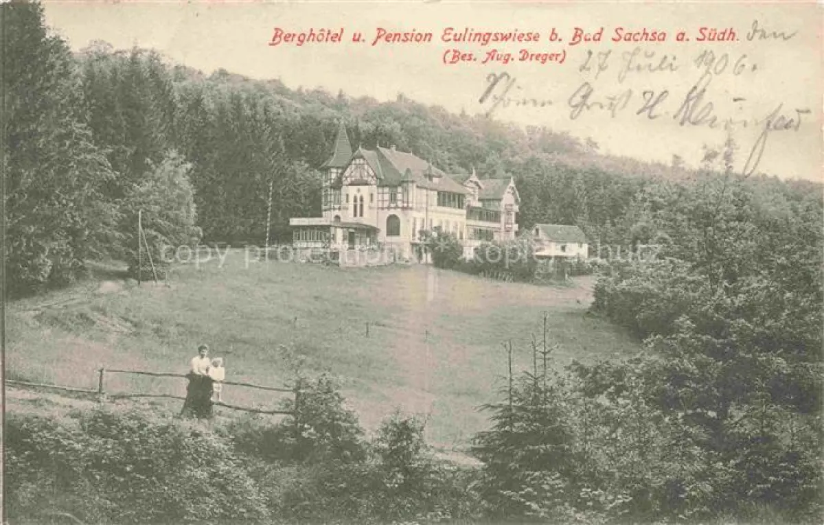alte Postkarte Bad Sachsa Osterode Harz Niedersachsen Berghotel Pension Eulingswiese postalisch gelaufen Erhaltung siehe scans [FriedD77]