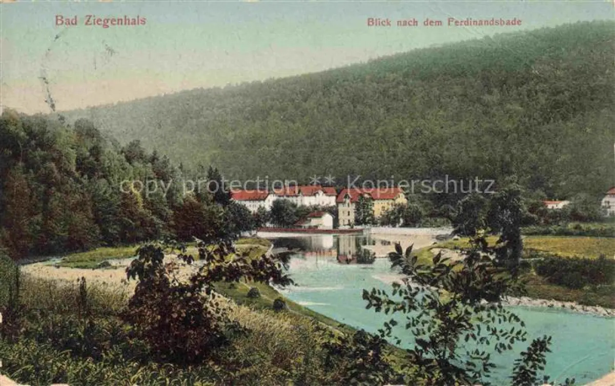 alte Postkarte Bad Ziegenhals Glucholazy PL Blick zum Ferdinandsbad postalisch gelaufen Erhaltung siehe scans [WerneD78]