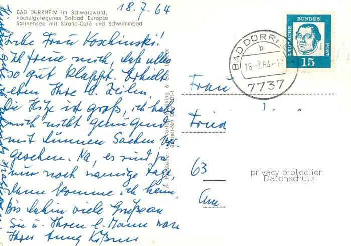 Bad_Duerrheim Salinensee Strandcafe Schwimmbad Bad_Duerrheim postalisch gelaufen 1964 Erhaltung siehe scans [KathaD81] Kathoren