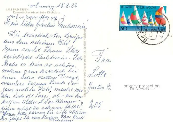 Bad_Essen Romantischer Winkel beim Kirchplatz Fachwerkhaeuser Bad_Essen postalisch gelaufen 1982 Erhaltung siehe scans [FriedD77] Frierer