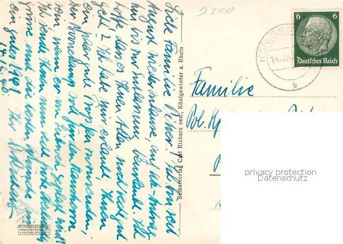 Bad_Godesberg 7 Gipfel des Siebengebirges von der Caecilienhoehe Bad_Godesberg postalisch gelaufen 1940 Erhaltung siehe scans [WerneD78] WernPID7